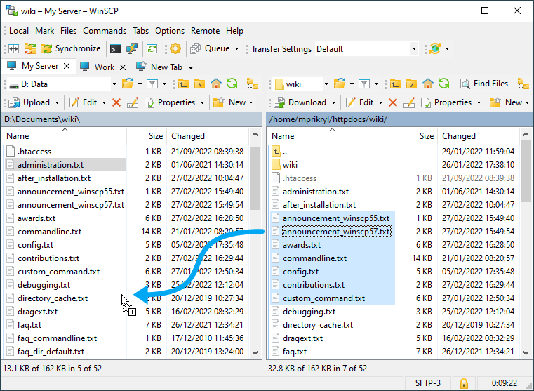 Documentation » Using WinSCP » Basic Tasks »